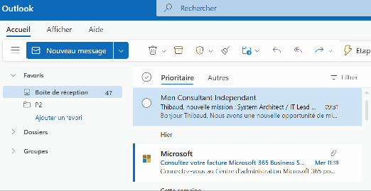 - Soit en faisant clic droit sur n’importe quel e-mail > règle > toujours déplacer les mails de … vers P2.
