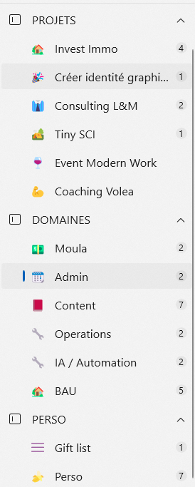Pour bénéficier de cette clarté d’esprit, vos tâches doivent être organisées en projet (ou en domaine, mais on verra cela une prochaine fois). Bref en "listes".